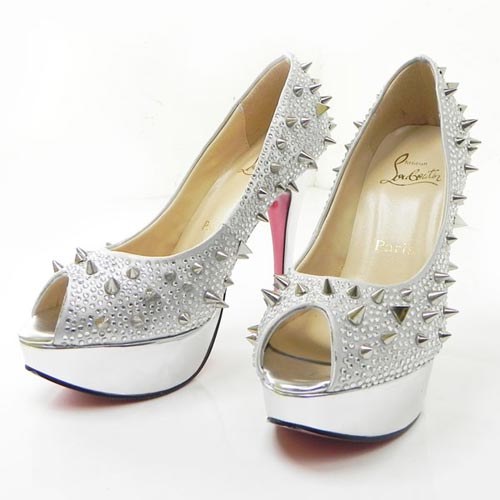 Lady Peep Spikes 140mm Toe Pumps Argent Christian Louboutin