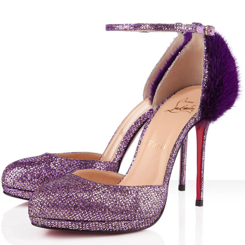 Christian Louboutin Pompes 120mm pourpre fou fourrure